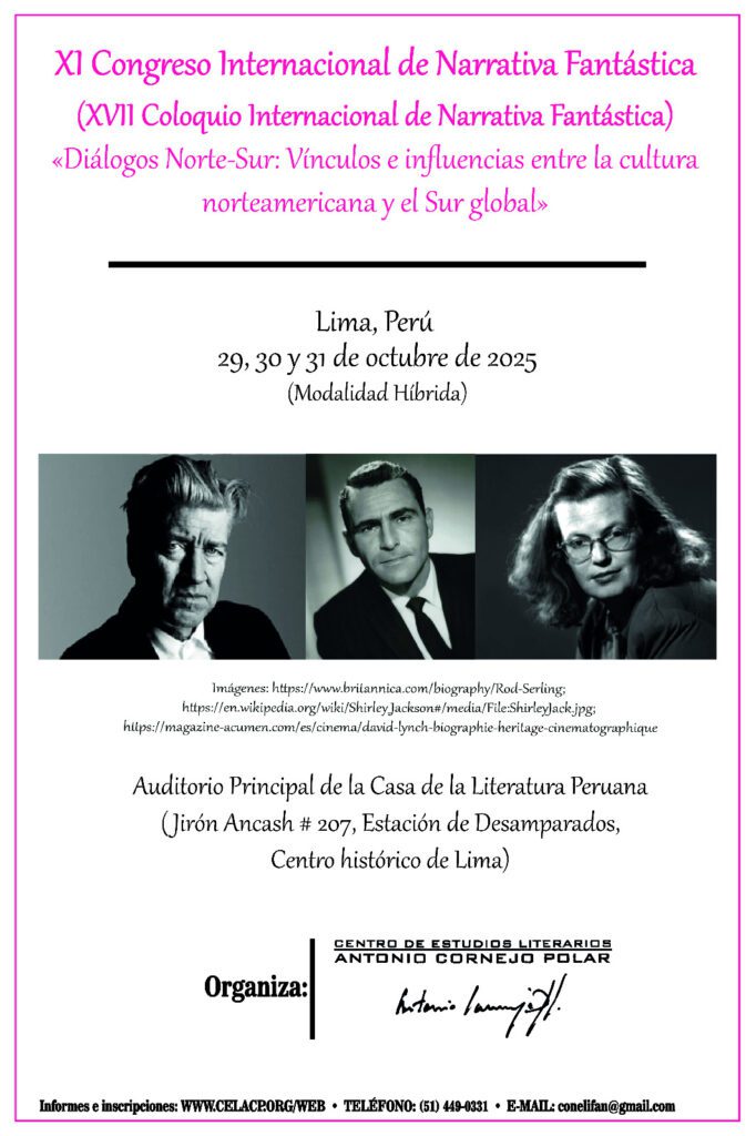 XI Congreso Internacional de Narrativa Fantástica (XVII Coloquio Internacional de Narrativa Fantástica) «Diálogos Norte-Sur: Vínculos e influencias entre la cultura norteamericana y el Sur global»